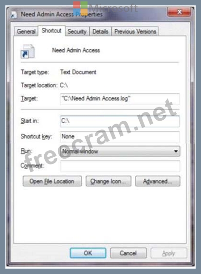 You need to change some of the properties of a desktop icon for an assignment. Your instructor provides you with an administrator username and password and asks you to do two tasks.