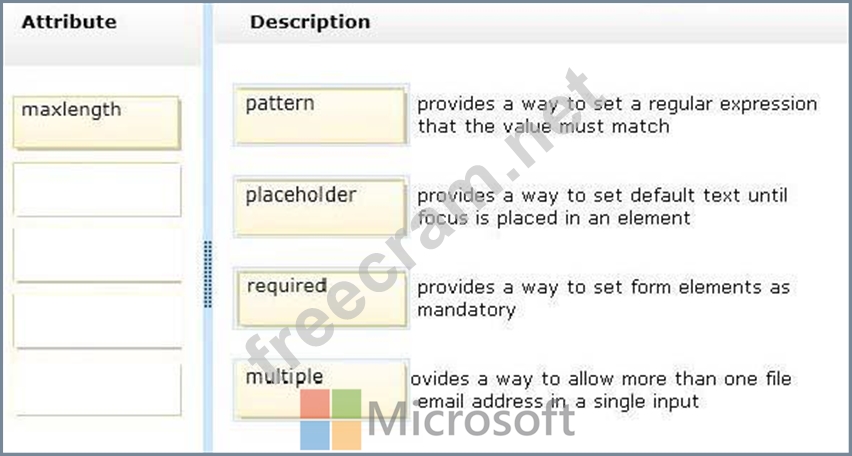 Question 32: DRAG DROP Match the HTML5 input attributes to the correspond...