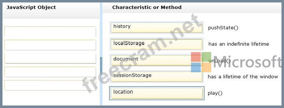 Question 22: DRAG DROP Match the JavaScript objects to the corresponding ...