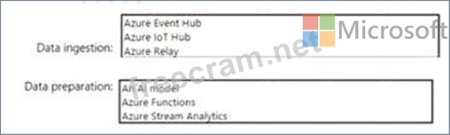 Which components should you use for data ingestion and data preparation? To answer, select the appropriate options in the answer area.