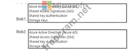 You plan to deploy an application that will perform image recognition. The application will store image data in two Azure Blob storage stores named Blob! and Blob2. You need to recommend a security solution that meets the following requirements: