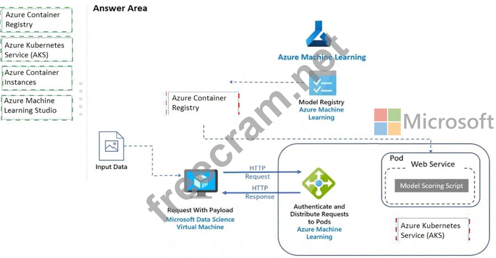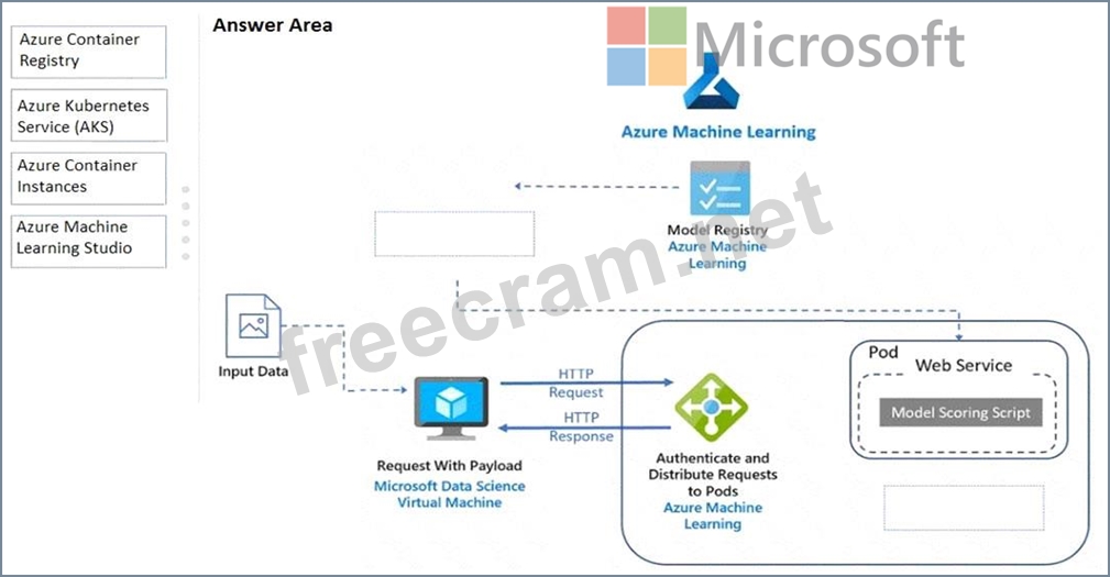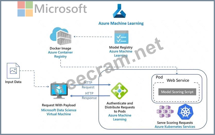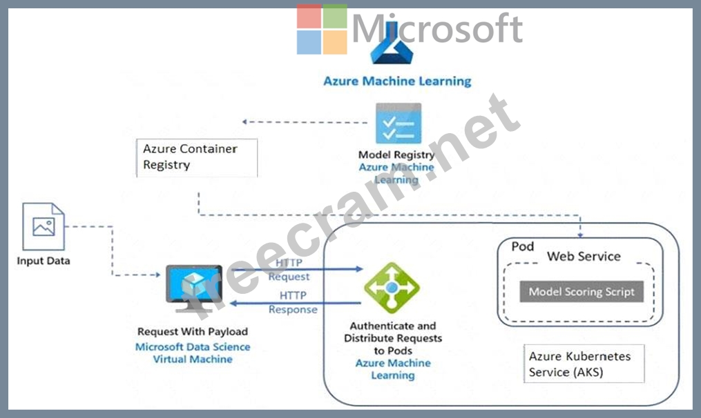Azure Container Registry enables storage of images for all types of Docker container deployments including DC/OS, Docker Swarm and Kubernetes. The scoring images are deployed as containers on Azure Kubernetes Service and used to run the scoring script. The image used here is created by Machine Learning from the trained model and scoring script, and then is pushed to the Azure Container Registry.