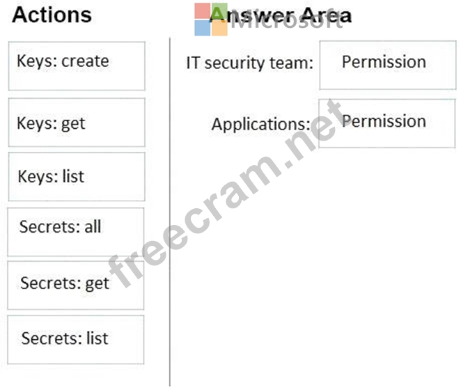 Which permissions should you grant? To answer, drag the appropriate permissions to the correct targets. Each permission may be used once, more than once, or not at all. You may need to drag the split bar between panes or scroll to view content.
