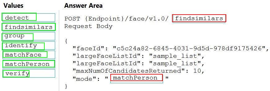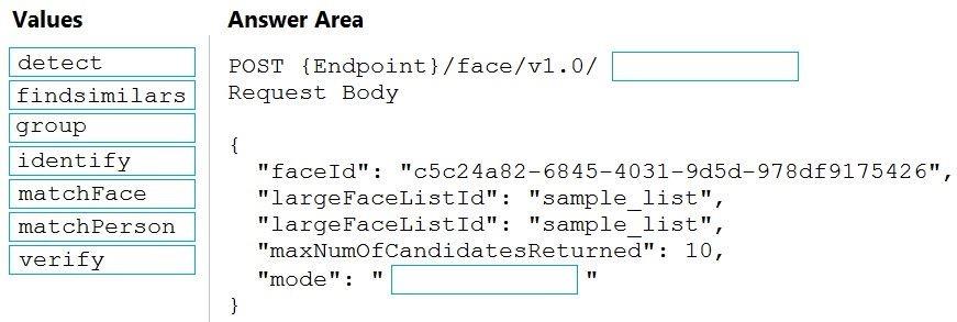 How should you complete the request? To answer, drag the appropriate values to the correct targets. Each value may be used once, more than once, or not at all. You may need to drag the split bar between panes or scroll to view content.
