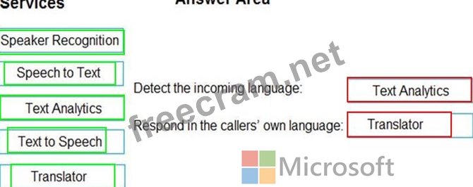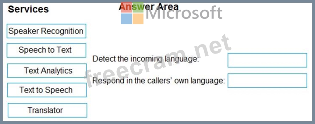 Which Azure Cognitive Services service should you use to meet each requirement? To answer, drag the appropriate services to the correct requirements. Each service may be used once, more than once, or not at all. You may need to drag the split bat between panes or scroll to view content.