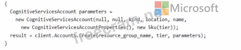 Question 79: You have the following C# method for creating Azure Cognitiv...