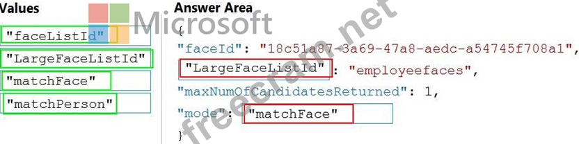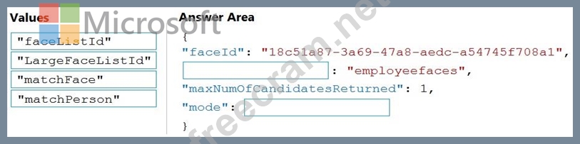 You are developing a call to the Face API. The call must find similar faces from an existing list named employeefaces. The employeefaces list contains 60,000 images.