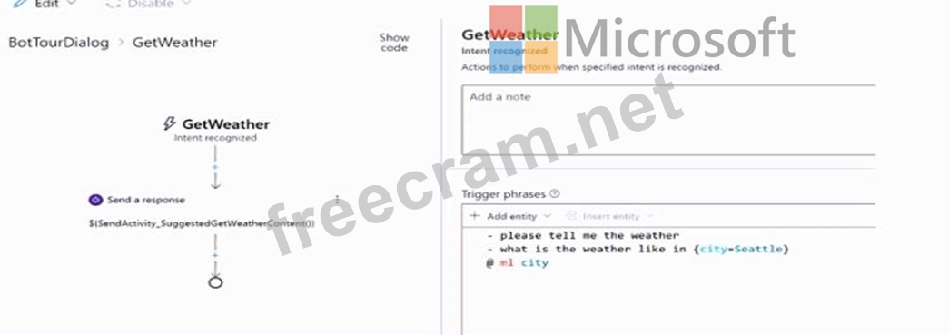 You have a bot that was built by using the Microsoft Bot Framework composer as shown in the following exhibit.