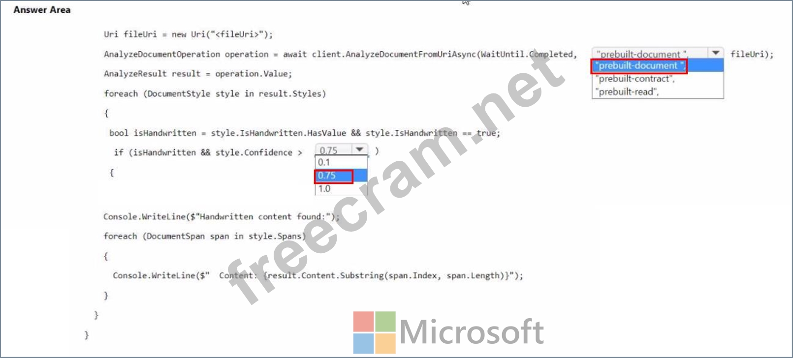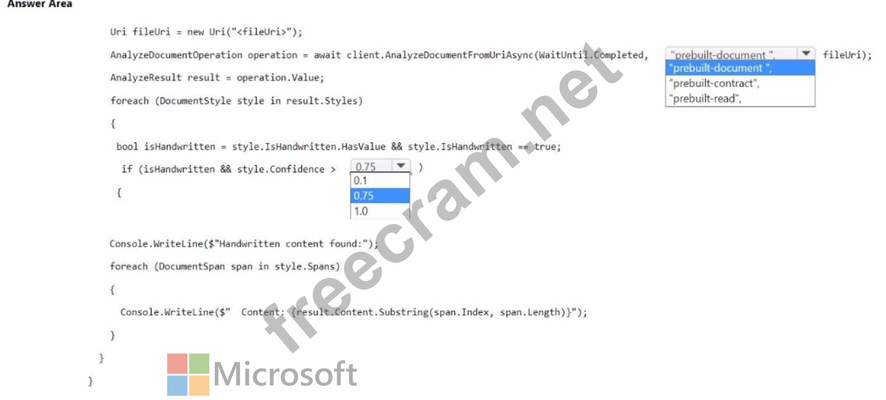 How should you complete the code? To answer, select the appropriate options in the answer area.