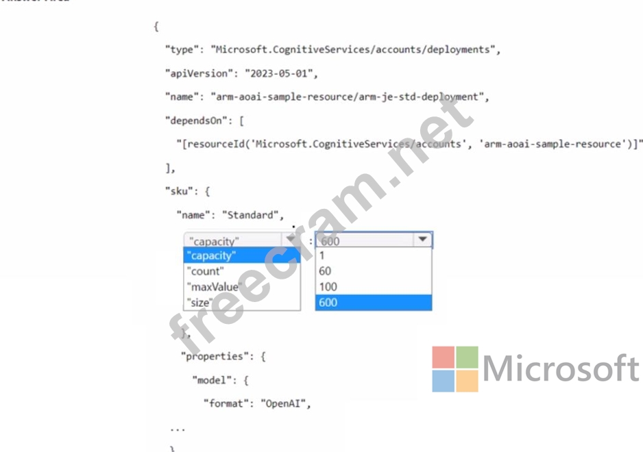 You plan to deploy an Azure OpenAI resource by using an Azure Resource Manager (ARM) template.