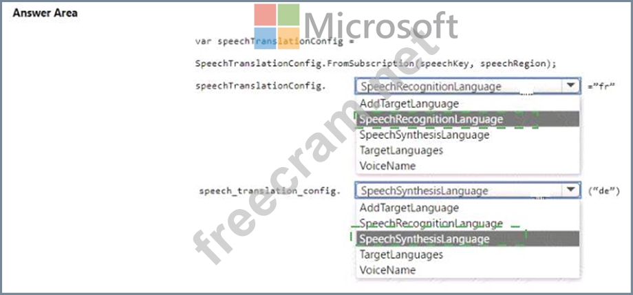 You are building an app by using the Speech SDK. The app will translate speech from French to German by using natural language processing.