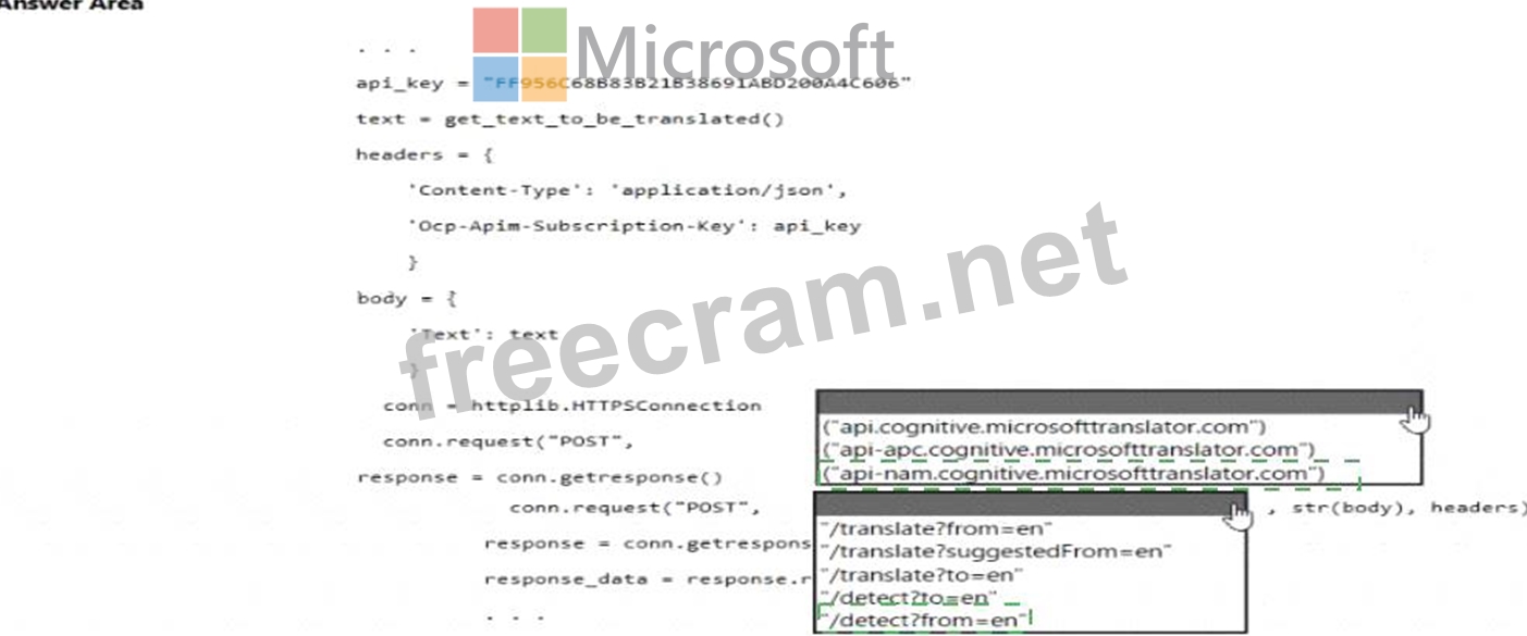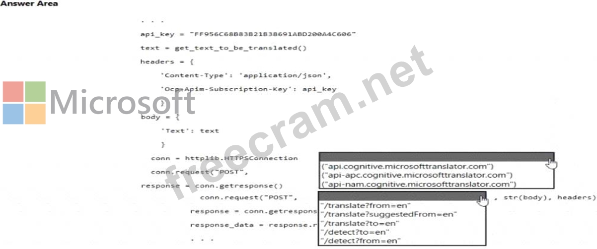 How should you complete the code? To answer, select the appropriate options in the answer area.