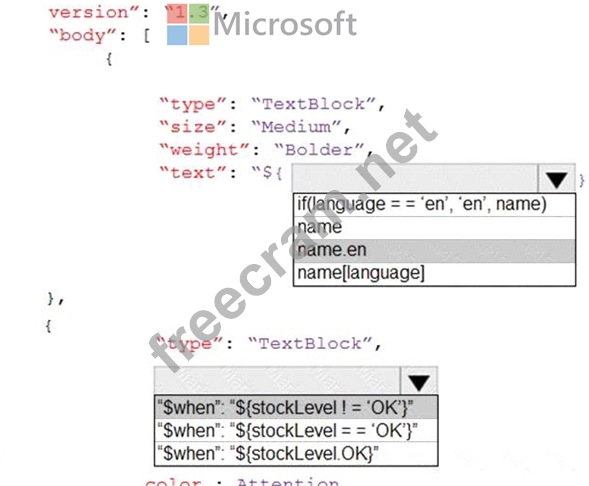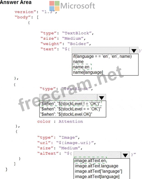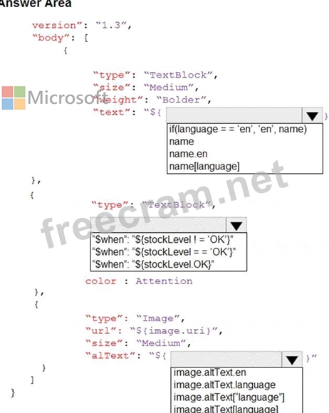 How should you complete the code? To answer, select the appropriate options in the answer area.