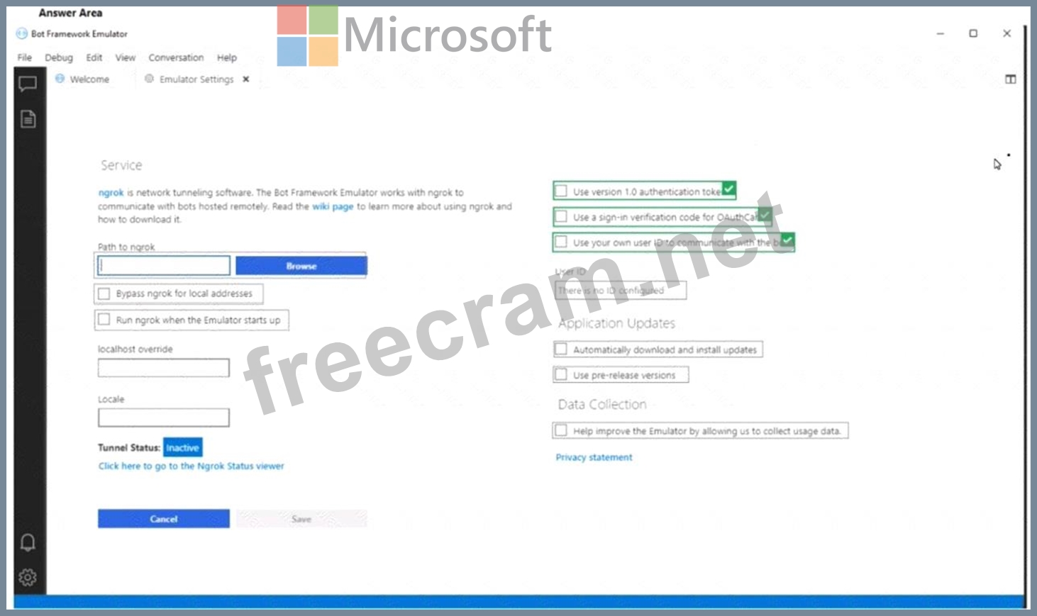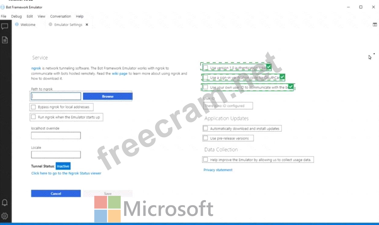 Question 44: You have a chatbot. You need to test the bot by using the Bo...
