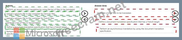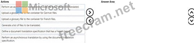 You create a blob container for German files and a blob container for French files. You upload the original files to the container for German files.