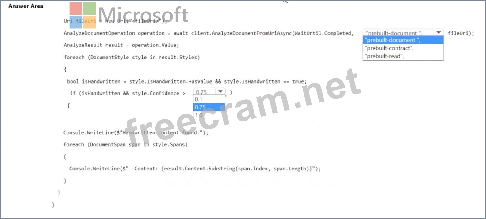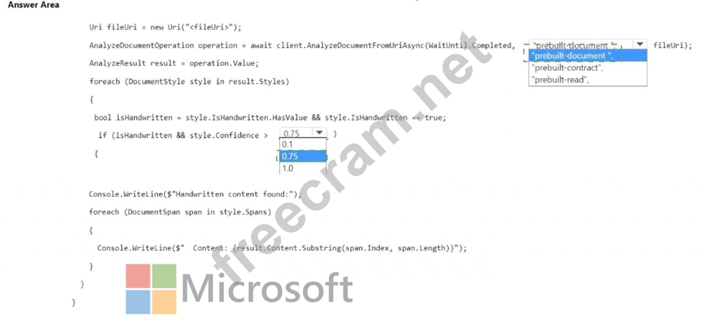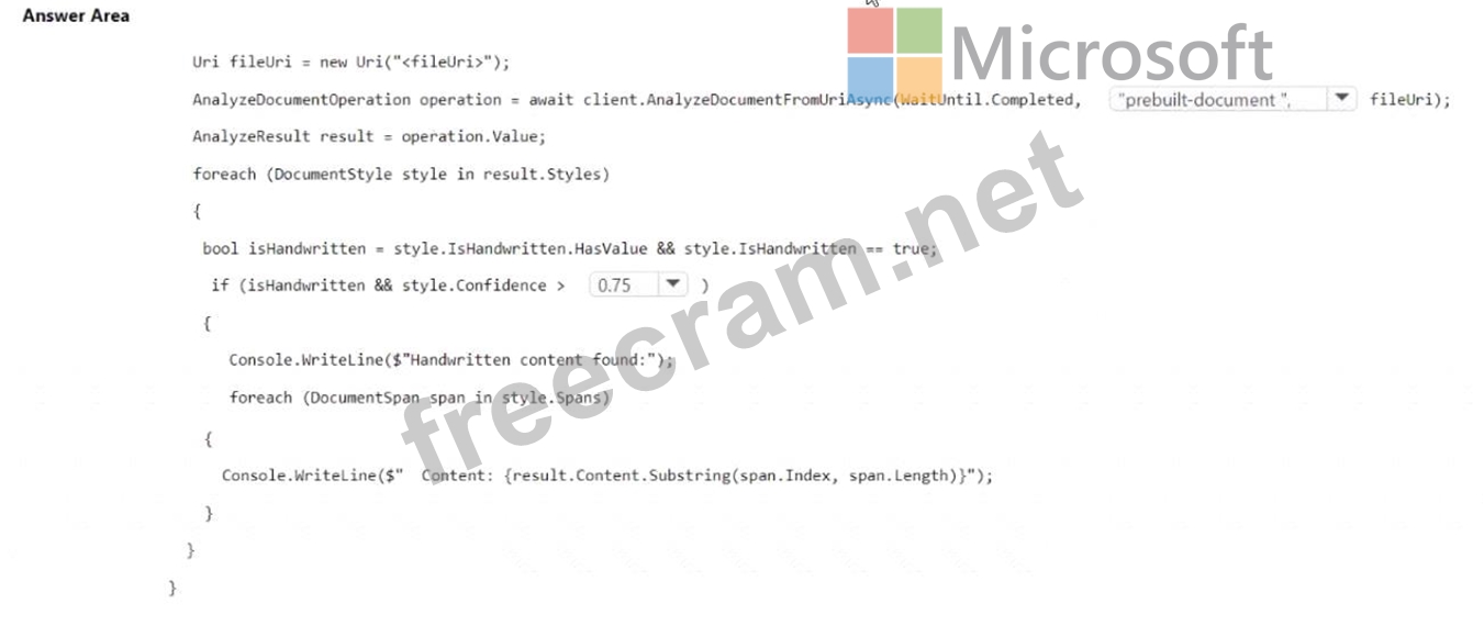 How should you complete the code? To answer, select the appropriate options in the answer area.
