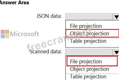 Which projection type should you use for each data type? To answer, select the appropriate options in the answer area.