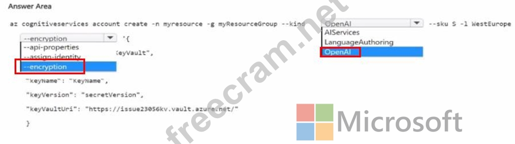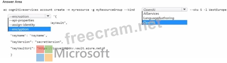 You need to create a new resource that will generate fictional stories in response to user prompts. The solution must ensure that the resource uses a customer-managed key to protect data.