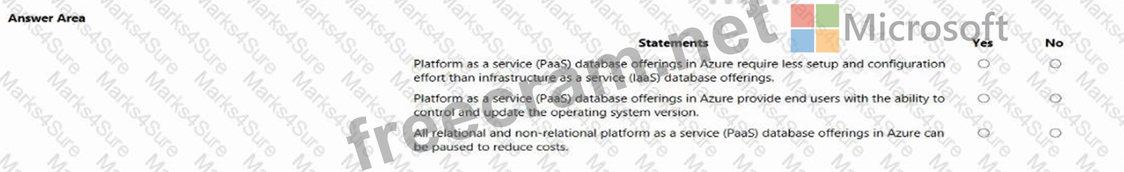 For each of the following statements, select Yes if the statement is true. Otherwise, select No.