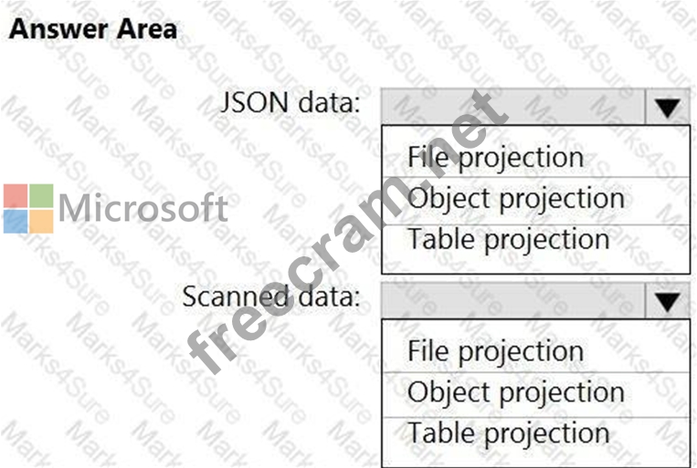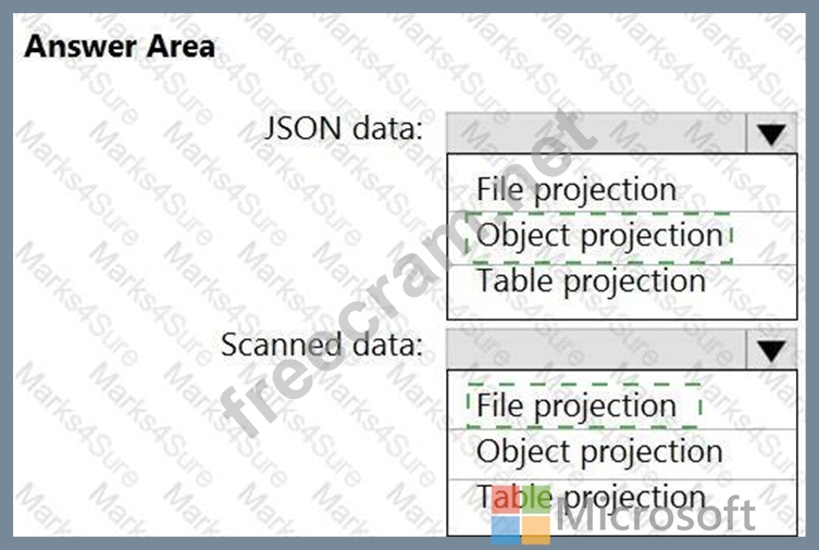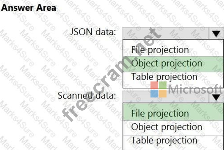 Which projection type should you use for each data type? To answer, select the appropriate options in the answer area.