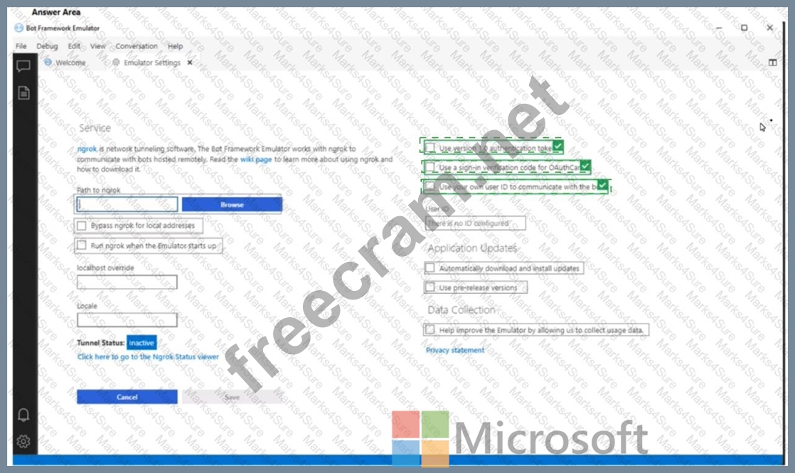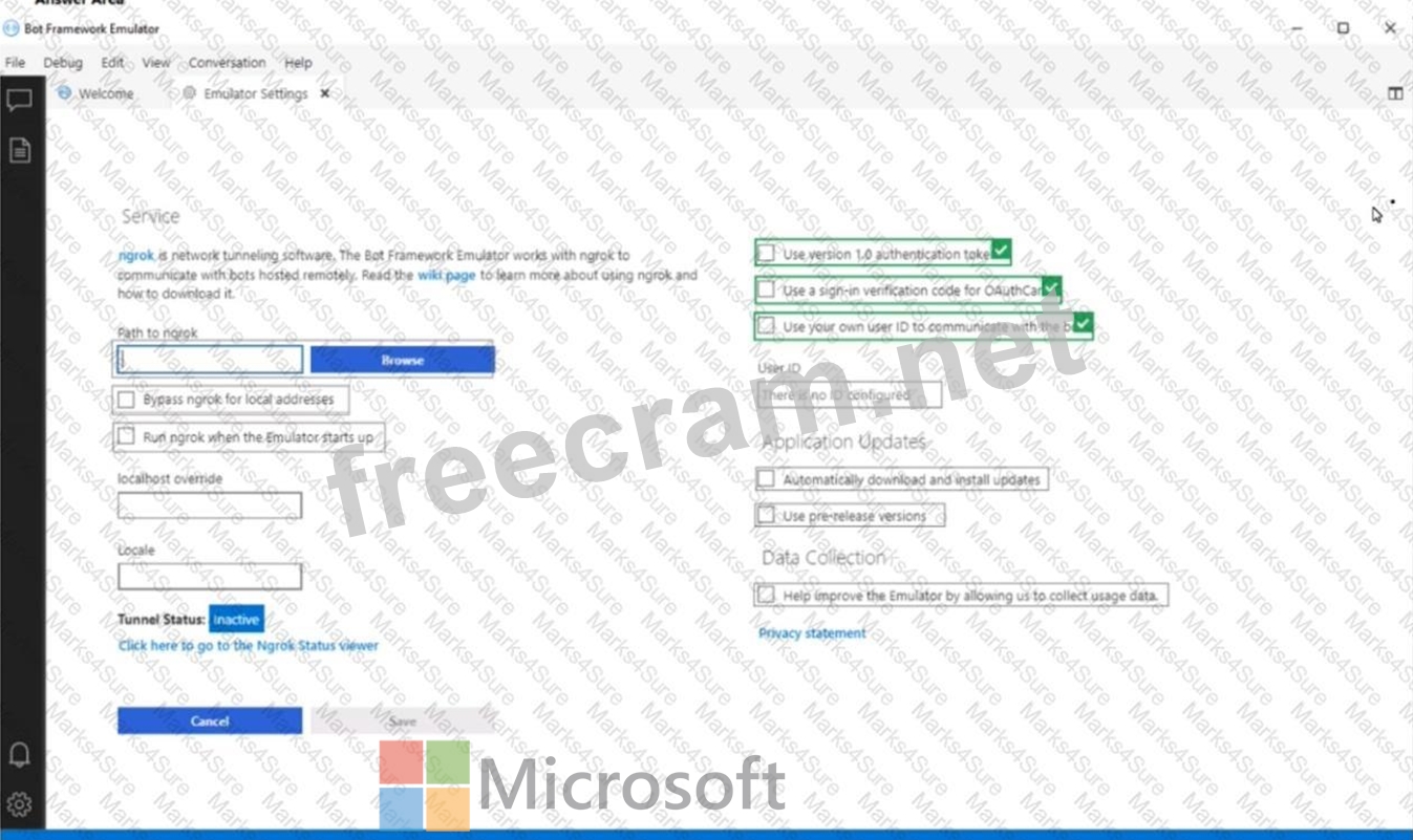 Question 94: You have a chatbot. You need to test the bot by using the Bo...