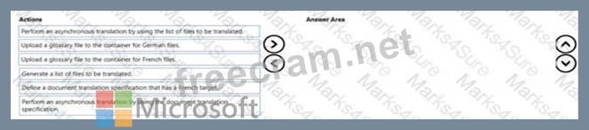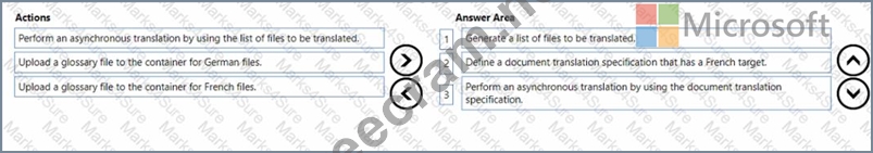 You create a blob container for German files and a blob container for French files. You upload the original files to the container for German files.