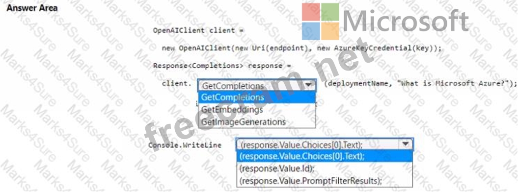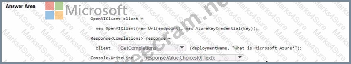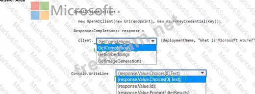How should you complete the code? To answer, select the appropriate options in the answer area NOTE: Each correct selection is worth one point.