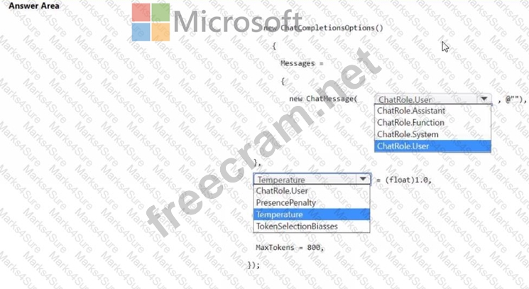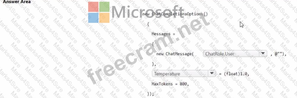 How should you complete the code? To answer, select the appropriate options in the answer area.
