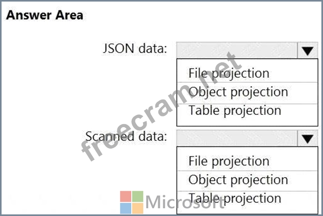 You are creating an enrichment pipeline that will use Azure Cognitive Search. The knowledge store contains unstructured JSON data and scanned PDF documents that contain text.