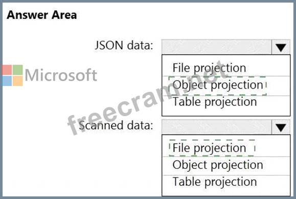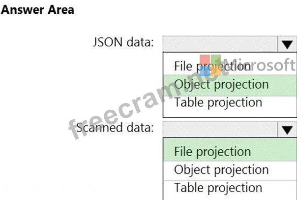 Which projection type should you use for each data type? To answer, select the appropriate options in the answer area.