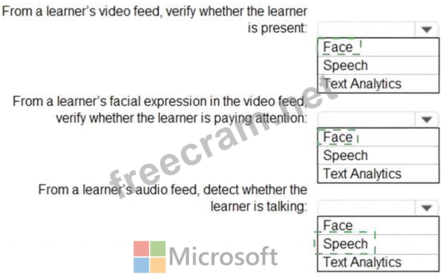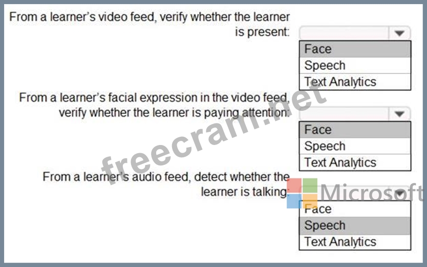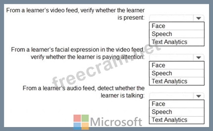 You need to use a video and audio feed from each learner's computer to detect whether the learner is present and paying attention. The solution must minimize development effort and identify each learner.