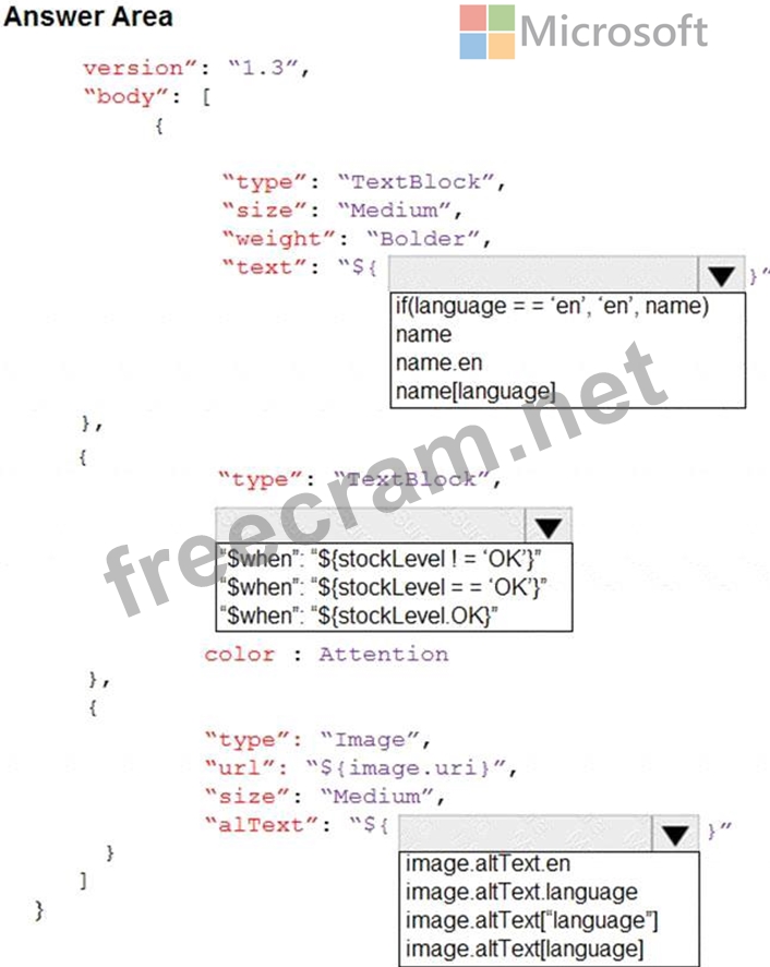 Box 2: "$when": "${stockLevel != 'OK'}"
