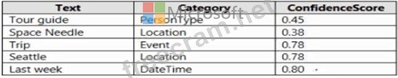 You are examining the Text Analytics output of an application. The text analyzed is: "Our tour guide took us up the Space Needle during our trip to Seattle last week." The response contains the data shown in the following table. Which Text Analytics API is used to analyze the text?