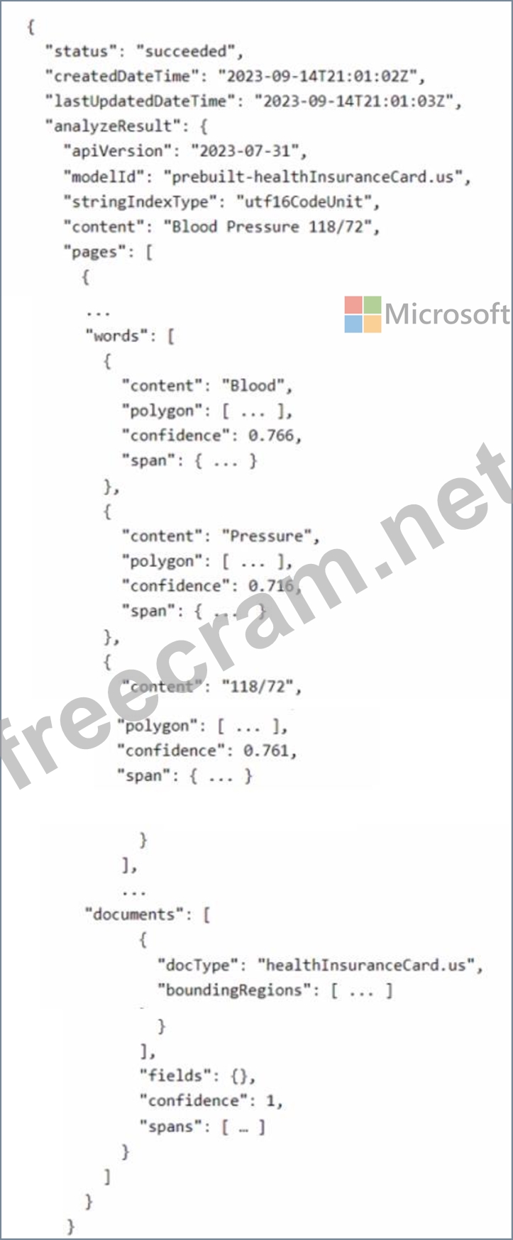 You have an app named App1 that uses Azure Al Document Intelligence to analyze medical You have an app named App1 that uses Azure Al Document Intelligence for patients. You send a request to App1 and receive the following response.