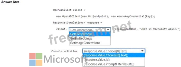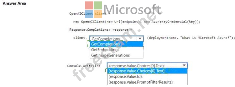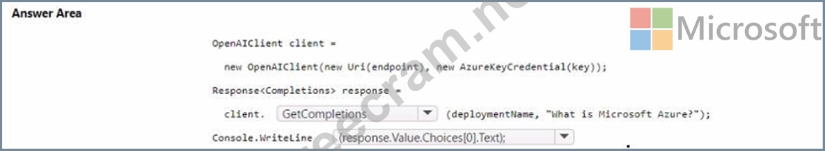 How should you complete the code? To answer, select the appropriate options in the answer area NOTE: Each correct selection is worth one point.