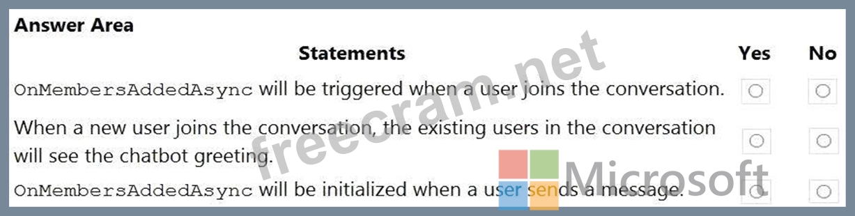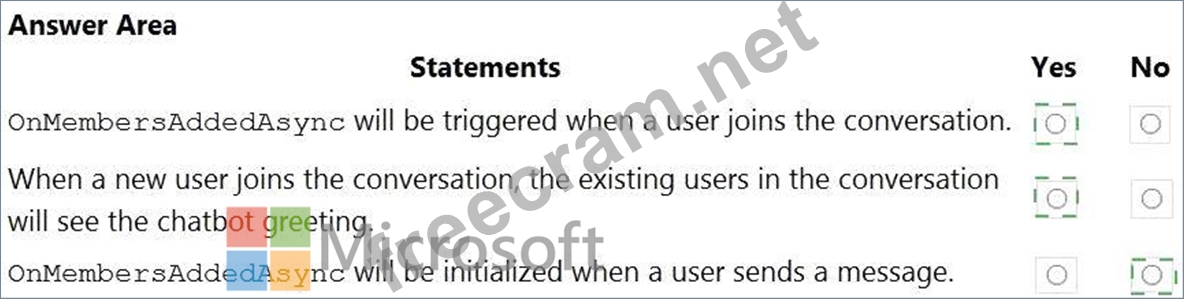 Question 87: You create a bot by using the Microsoft Bot Framework SDK. Y...