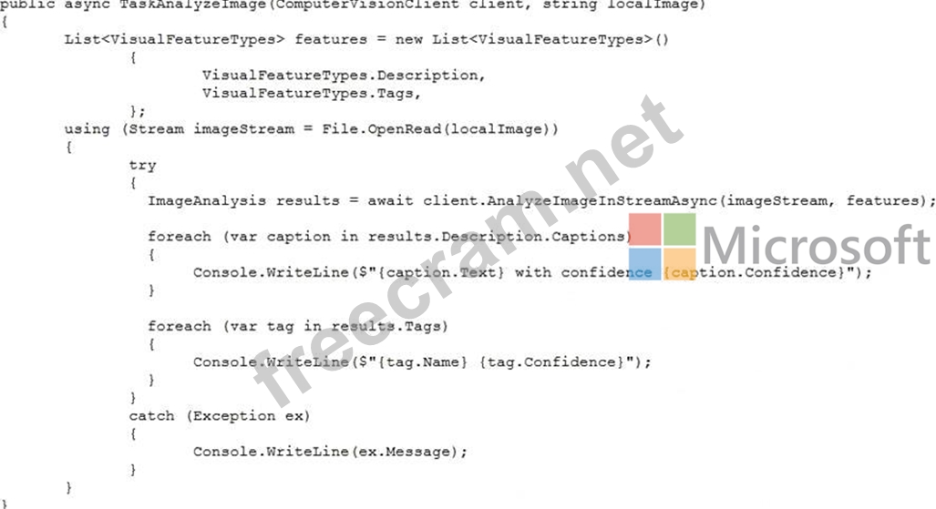 Question 52: You are developing an app that will use the Azure AI vision ...