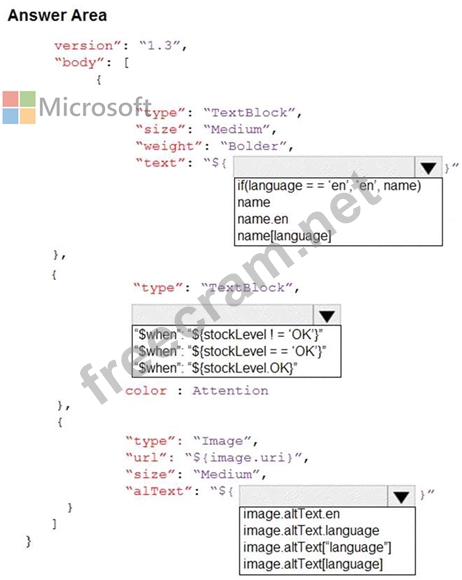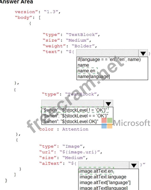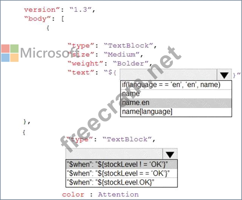How should you complete the code? To answer, select the appropriate options in the answer area.