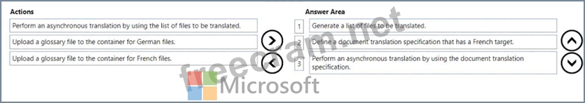 You create a blob container for German files and a blob container for French files. You upload the original files to the container for German files.