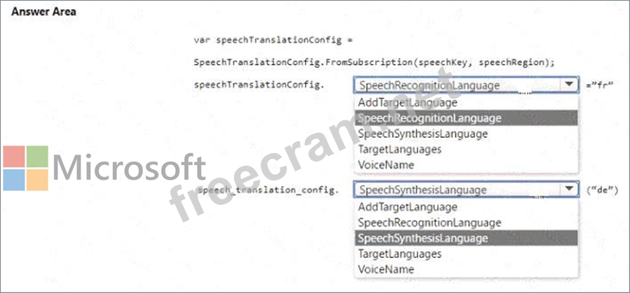 You are building an app by using the Speech SDK. The app will translate speech from French to German by using natural language processing.