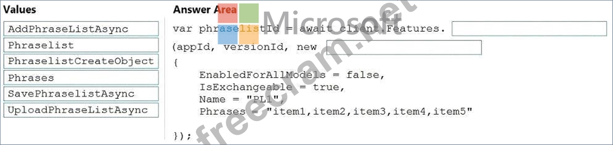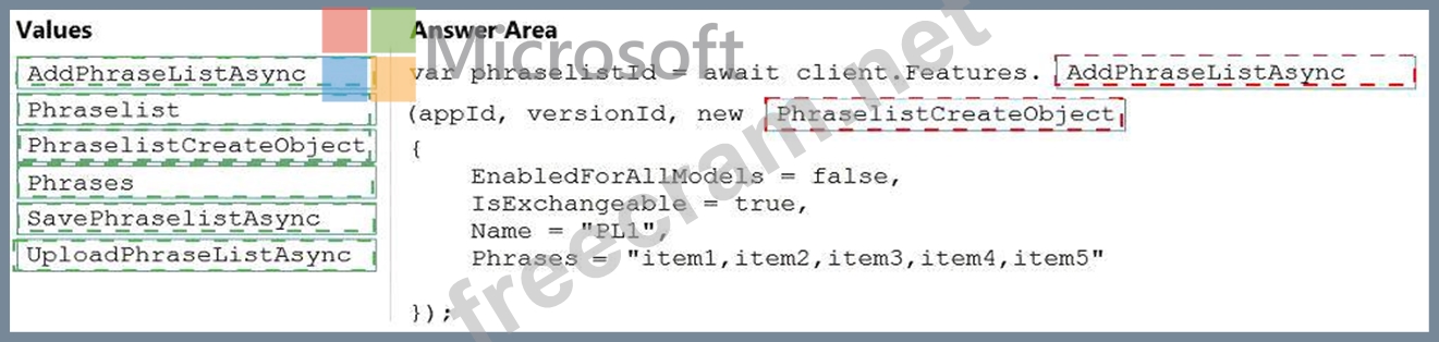 How should you complete the code? To answer, drag the appropriate values to the correct targets. Each value may be used once, more than once, or not at all. You may need to drag the split bar between panes or scroll to view content.
