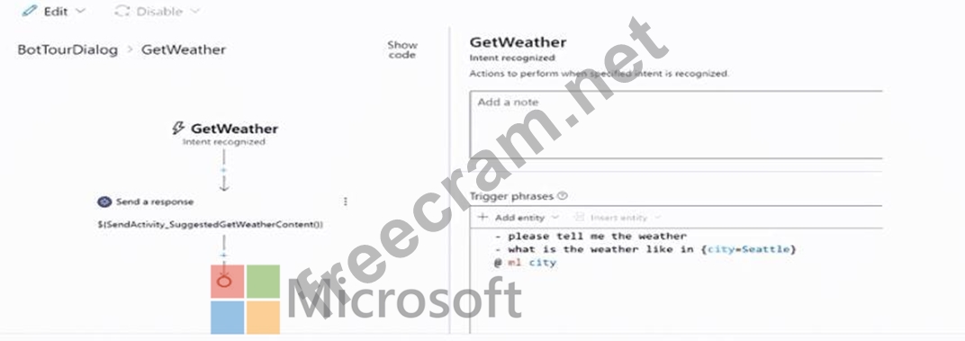 Question 13: You are building a chatbot by using Microsoft Bot Framework ...