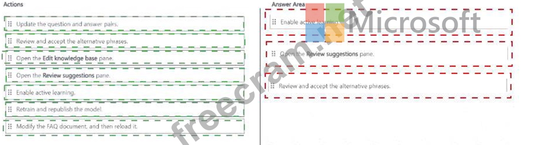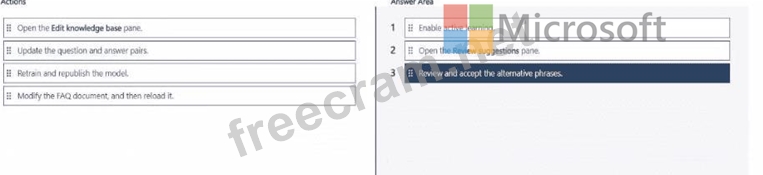 Which three actions should you perform in sequence from Language Studio? To answer, move the appropriate actions from the list of actions to the answer area and arrange them in the correct order.