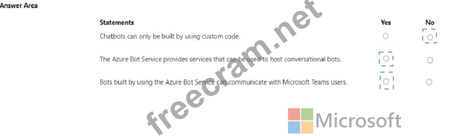 For each of the following statements, select Yes if the statement is true. Otherwise, select No.