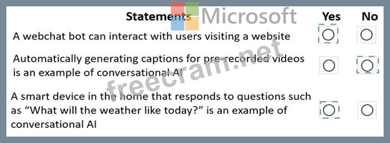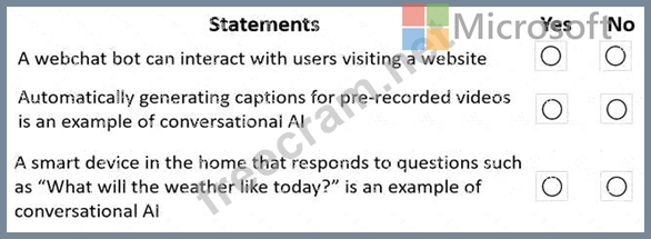 For each of the following statements, select Yes if the statement is true. Otherwise, select No.