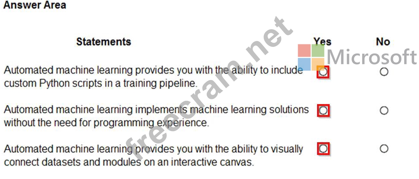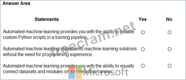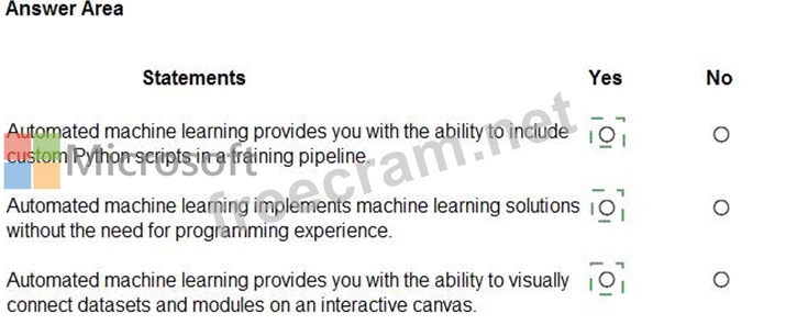 For each of the following statements, select Yes if the statement is true. Otherwise, select No.