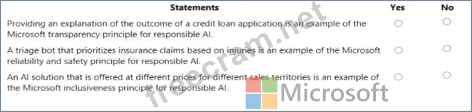 For each of the following statements, select Yes if the statement is true. Otherwise, select No.