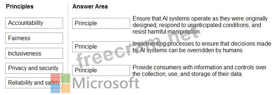 Question 73: Match the Microsoft guiding principles for responsible AI to...