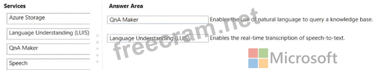 Question 78: Match the Azure Cognitive Services service to the appropriat...