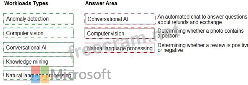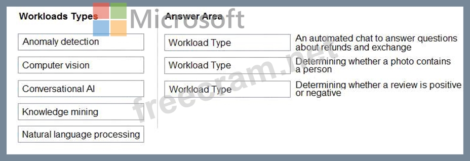 Question 74: Match the types of AI workloads to the appropriate scenarios...